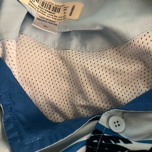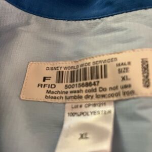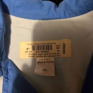 This shirt is from a Disney Crew member. Get a piece of authentic Disney wear. Men’s size XL. Baby blue in color. The lighting in my house is not very good. Shirt is in excellent condition.