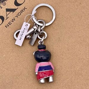Charming Coach bear keychain in pink and silver. Perfect for adding a playful touch to your keys or bag.