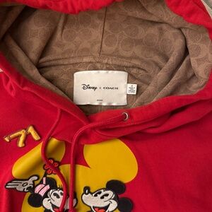 Disney X Coach Collab, Red Hoodie, Gently Worn, Size — Men’s Medium "Walt Disney Logo" and retro design.
