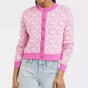 Disney X Skinnydip Womens Aristocats Marie Graphic Cardigan Sweater Medium Pink