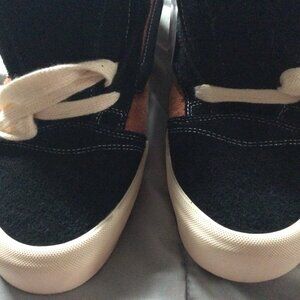 These shoes inspired by the iconic villain Scar from The Lion King feature Scar's signature color, facial scar, and references to his hyena followers. The Knu school is a 90s-inspired style with a puffy tongue and collar, thick laces and Vans waffle soles.