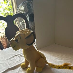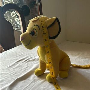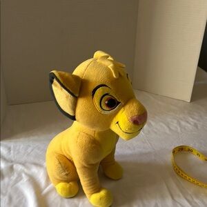 This delightful yellow plush toy brings Simba from Disney's "The Lion King" to life with its soft, cuddly texture and charming features. With its expressive eyes and iconic lion cub design, this stuffed animal is perfect for fans and collectors alike. Its medium size makes it an ideal companion for both playtime and display.