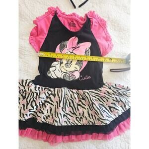 Disney Zebra Print & Pink Ruffles Minnie Mouse Dress & Ears Set Size 6 Girls