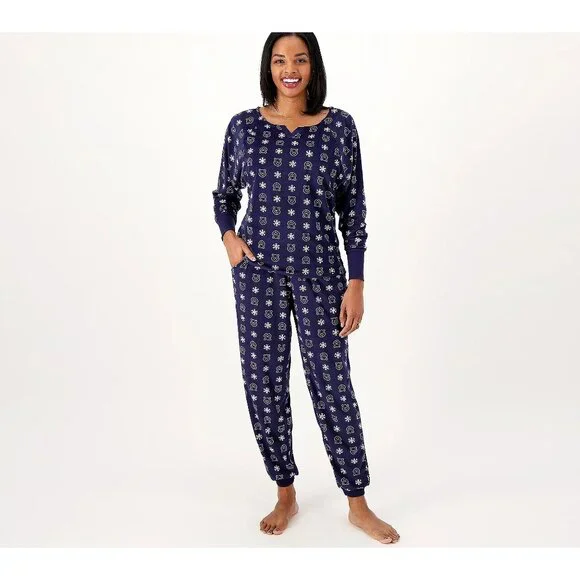 Disney and Friend Super Soft Velvet Top and Jogger Pajama Set Navy Pooh Bear 1X