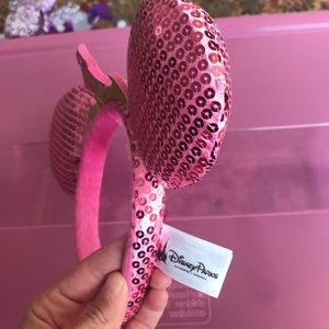 Brand new with tags is this beautiful pink sequin Minnie Mouse head band with Aurora golden crown with three pink tear drop shape rhinestones and a photo of Disney sleeping beauty aurora from Walt Disney world in Orlando Florida item is brand new with tag item and comes from a smoke free pet free area