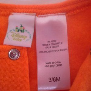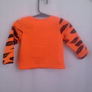 Disney Baby Tigger sweatshirt top. Sz 3/6M. Snaps. Orange with black. 100% polyester. Chest 20" (51 cm), back length 11" (28 cm). Location 3444-gB. Non-smoking cat-friendly home.