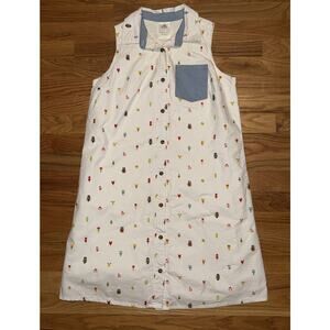 Disney button down cactus Dress Women Small White Camera Ice Cream Mickey Mouse