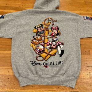 Disney by Hanes Disney Cruiseline grey zip up hoodie. Disneyland Walt Disney World by Hanes. Features Mickey Mouse, Goofy, Donald, Pluto. 2 pockets. 50% preshrunk cotton, 50% polyester. Armpit to armpit 16 1/2 inches. Length 20 inches. Kids size medium. Great condition!