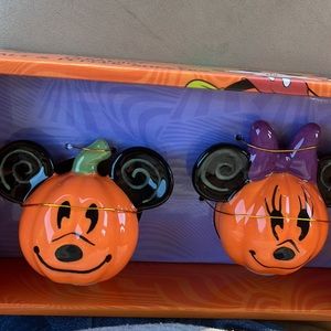 New! Mickey & Minnie pumpkin ceramic salt & pepper shakers