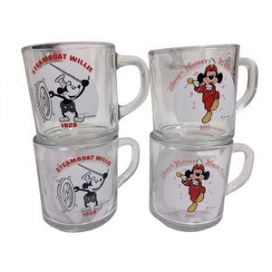 Disney clear Mickey Mouse Collectible Glass Dining Mugs EUC