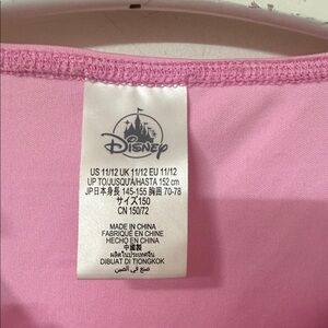 Charming Disney kids costume. Features pink sleeves and skirt. Red and blue accents with floral patterns. Perfect for dress-up fun.