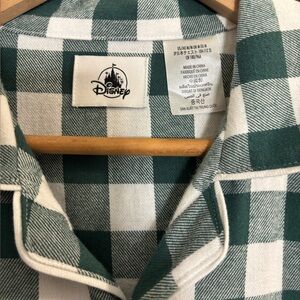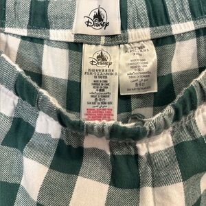 Disney green & white checked flannel pajama set w/ Christmas scene embroidery