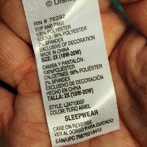 Disney little Mermaid fleece soft pajama set size womans 2xl