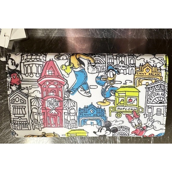 Disney long wallet Mikey Mouse Donald Duck Goofy character purse Credit Card ID.