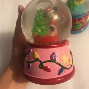 Disney mickey mouse and minnie mouse musical christmas snow globes set