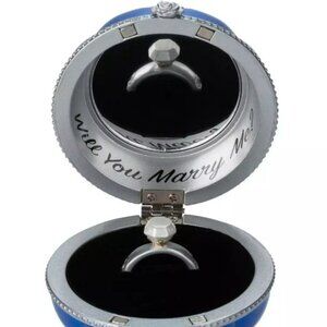 Add a touch of fairytale and surprise to your Christmas proposal this year with this elegant ring holder ornament. The beautiful design features a figural Disneyland castle, rhinestone details and opens up to reveal a ''Will you marry me?'' message with a secure spot for your ring of choice. It's the perfect addition of magic for your special holiday plans.
