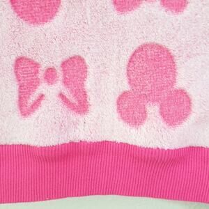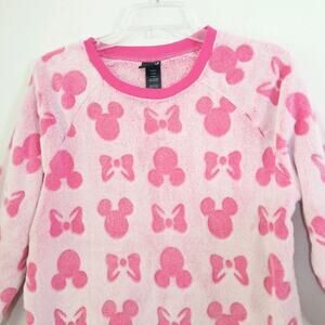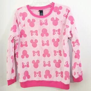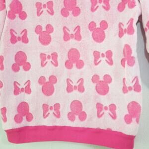 Disney pink furry fleece crew neck pullover sweatshirt with embossed Mickey Mouse ears and bows