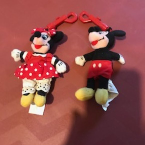 Disney Mickey and Minnie purse or backpack clips. They are minnie stuffed Mickey and Minnie. They are each about 6 inches long and the plastic clips are 3 inches long