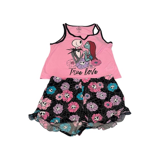Disney szM Nightmare Before Christmas Women's Pink and Black Sleepwear Set EUC