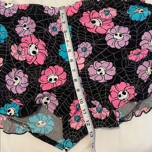 Embrace comfort and style with this Nightmare Before Christmas shorts and tank sleepwear set. Featuring a vibrant pink top and black shorts adorned with colorful floral designs, this set is perfect for fans of the iconic movie. Enjoy a cozy night's sleep in this charming ensemble.