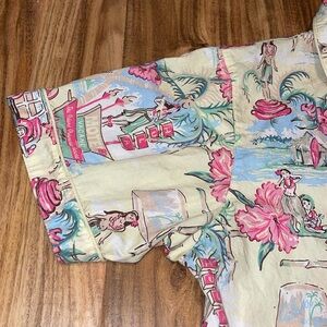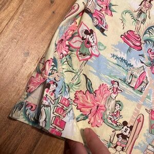 Disney women’s medium 8 10 Shirt button up Hawaiian Print yellow Mickey Minnie