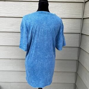 Disney women’s size M T-shirt. Blue, short sleeves, front has a large picture of stitch and the word STITCH. Cotton polyester blend.