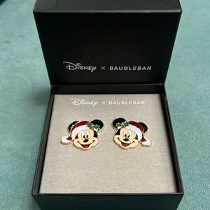 Here is a pair of Mickey Mouse Santa hat Christmas earrings designed by Disney in collaboration with BAUBLEBAR. The earrings are new and come in a box.