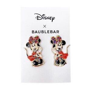 Disney x Baublebar Minnie Mouse Birthday Earrings Enamel Gold Plated New NWT