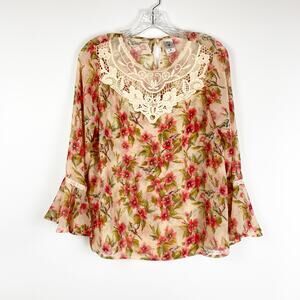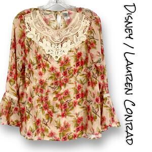 Disney x Lauren Conrad Snow White Floral Blouse Bell Sleeves Women’s Size Medium