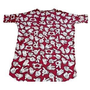 Disney x LuLaRoe Irma Tunic Top Red Shirt Mickey Mouse Hands Print Sz Small