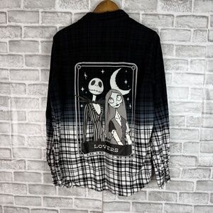 Disney x Nightmare Before Christmas Ombre Plaid Button Flannel Shirt Mens Large