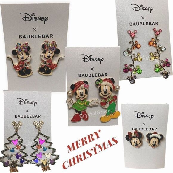 Disney x Baublebar Holiday Mickey Minnie Christmas Earrings Tree Santa Lights