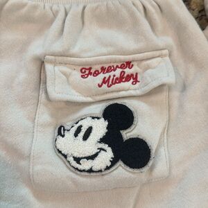 Cream pants with Mickey Mouse print. Ideal for everyday comfort.