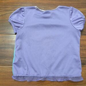 Disney Fairies Tinkerbell 2 piece pajama set. Short sleeve top. Bottoms with elastic stretch waistband. 100% polyester. 100% polyester. Left armpit rip (shown in last photo). Size 24 months.