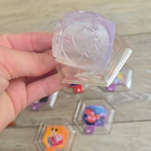 Unleash your imagination with this delightful lot of 11 Disney Infinity power discs! Featuring beloved characters like Mulan, Mickey, Rapunzel, Alice, and Nemo, and more- each disc boasts vibrant colors and intricate prints that will add a splash of magic to your gaming experience. The glossy surfaces glimmer under the light, showcasing playful designs that promise to transport you into a world of adventure. Perfect for enhancing your gameplay, these discs unlock unique abilities and power-ups, making every session an enchanting journey.