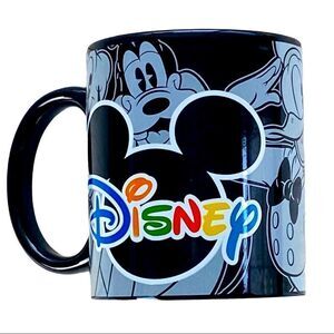 Disney Jerry Leigh Character Sketches Ceramic Mug NWT is brand new with tags and has never been used. Mug features Mickey Mouse, Minnie Mouse, Donald Duck and Pluto characters in the background with mouse ears and multi-colored Disney logo. Mug is approximately 3.5” high and has a 3” diameter (measured across the top).