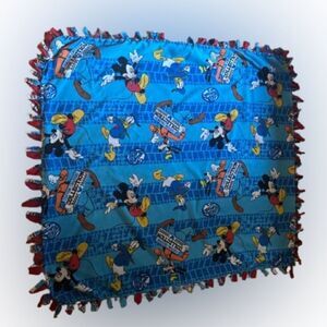 Cozy blanket featuring Mickey Mouse in vibrant blue and red colors. Perfect for Disney fans. Red on the backside. Custom Made.
