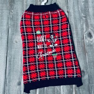 Disney Mickey Mouse Red Plaid Christmas Holiday Dog Pet Sweater M