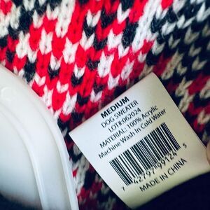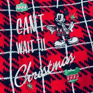 NWOT Disney size Medium adorable red and black knit dog pet sweater with embroidered Mickey Mouse character and ornaments. Medium thickness. See photos for sizing details and measurements. “Can’t Wait Til Christmas”