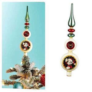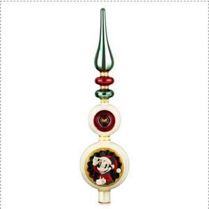 ◦ Our stars shine brightly on this elegant Mickey and Minnie holiday tree topper. In bas relief, the timeless twosome burst out to welcome your family and top off your Christmas tree creation.