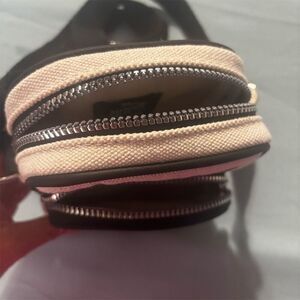 This Disney crossbody purse features a charming Minnie Mouse graphic on an ivory synthetic exterior. Designed for unisex adults, it includes a zip closure and an adjustable strap for convenience. Lightweight and themed around Disney, this purse is a Primark exclusive. The item is new with tags.