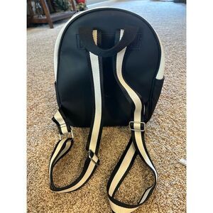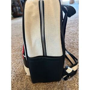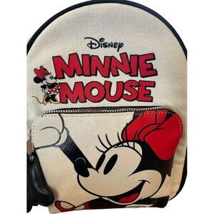 This Disney backpack features a multicolor design with Minnie Mouse graphics, suitable for unisex kids. It is crafted from leather and cloth, with the black part being leather and the white part cloth. The medium-sized backpack offers a spacious interior and a zippered pocket for convenience. It has a zip closure and is part of the Primark Exclusive product line. The item is new without tags and has never been used.