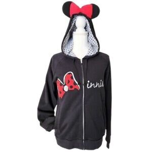 Disney Minnie Mouse Hooded Full Zip Jacket Fleece Lined Hoodie Black Size Large