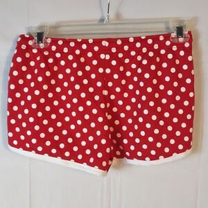 These New with tags red and white polka dot Disney Minnie Mouse shorts are a junior size Medium (7-9) with an elastic waist measuring 31" and an inseam of 4". It has a drawstring waistband. 60% cotton 40% polyester and machine washable. All offers are welcome.