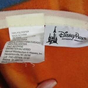 This is a super cute retro Disney Parks Mickey Mouse Blanket in orange and navy blue cozy fleece.