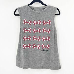 Disney Parks Minnie Mouse Bow Tank Top Womens Size S Gray Crew Neck Casual