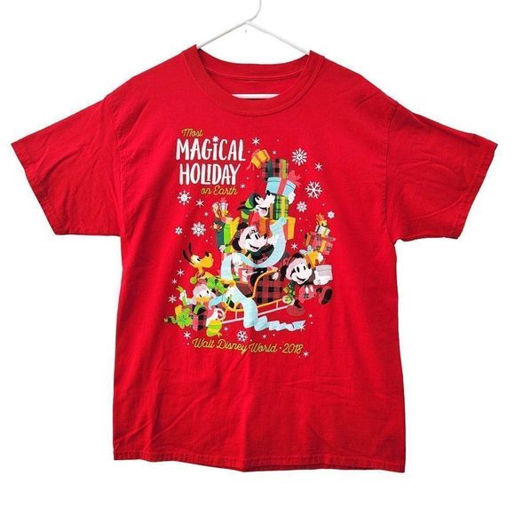 Disney Parks Womens L Red Disney Christmas Walt Disney World 2018 T-shirt. Excellent pre-owned condition with no flaws.