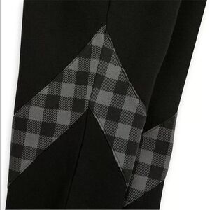 ◦ A smiling Mickey Mouse Jack-o-lantern appliqué decorates the front while diagonal plaid bands on the legs make them frightfully fashionable.