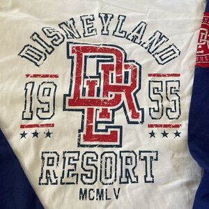 Disney Parks White/Navy/Red Baseball Tee Mens S Disneyland Resort W/Patches