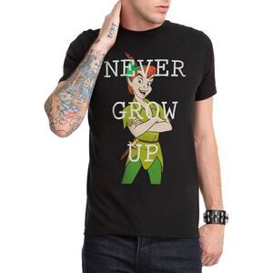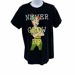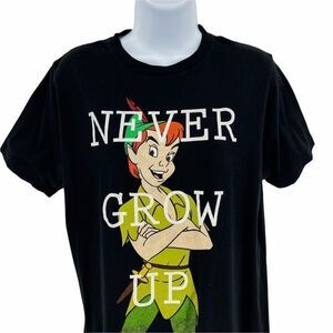 Disney Peter Pan Black Never Grow Up Short Sleeve T-Shirt Men's Size Medium M
